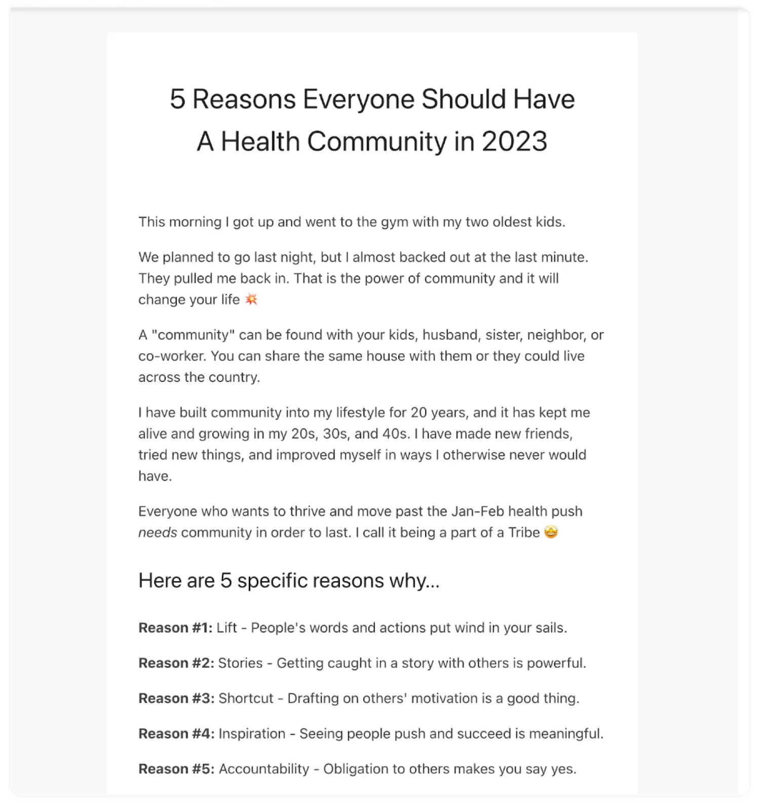 In a crowded industry like fitness, that meant Brooke and Finley had to understand exactly what kind of community they wanted to build. Taking fitness as an example, that could look like someone looking to: