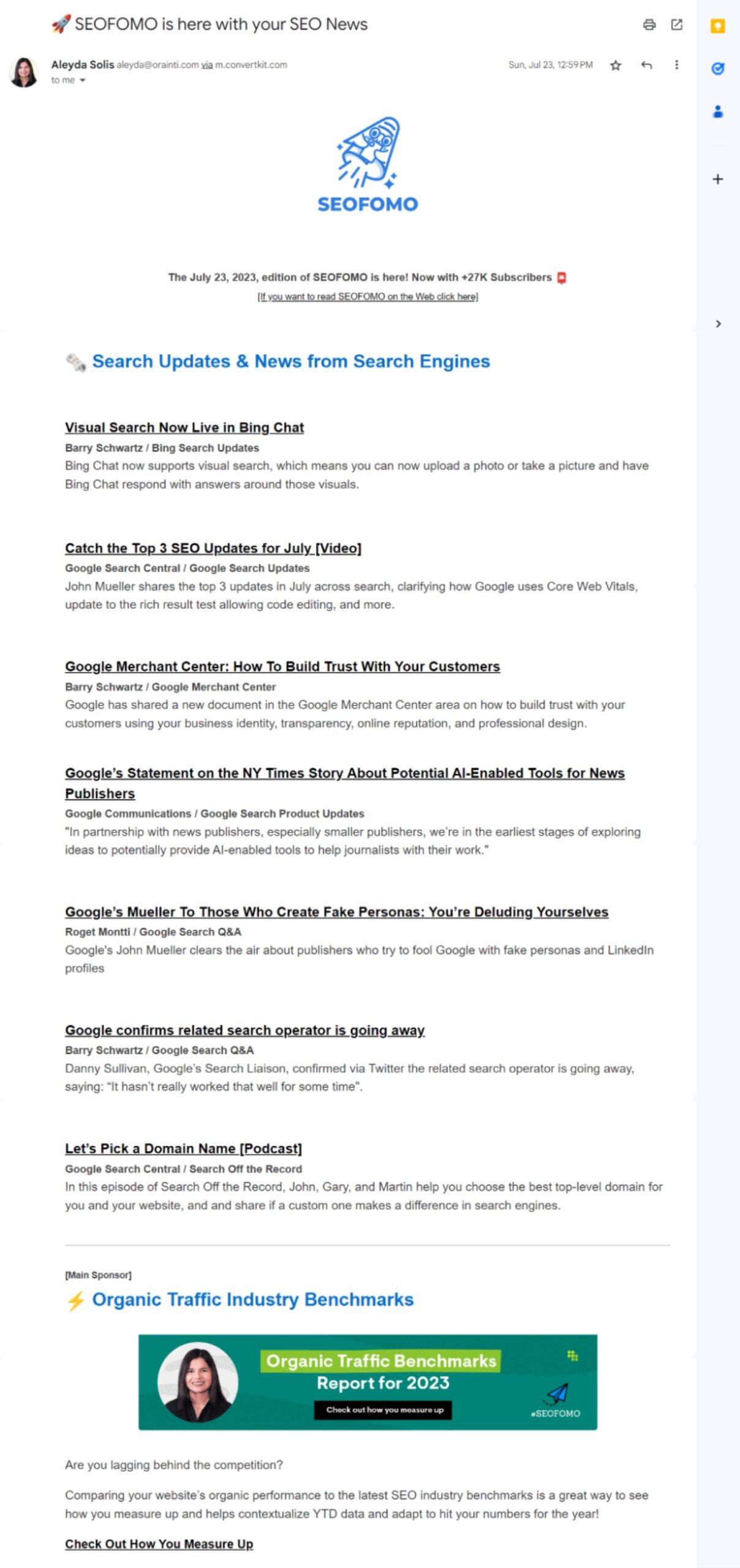 Take SEO pro Aleyda Solis. She packs her newsletter with SEO-related news that her subscribers are eager to receive: