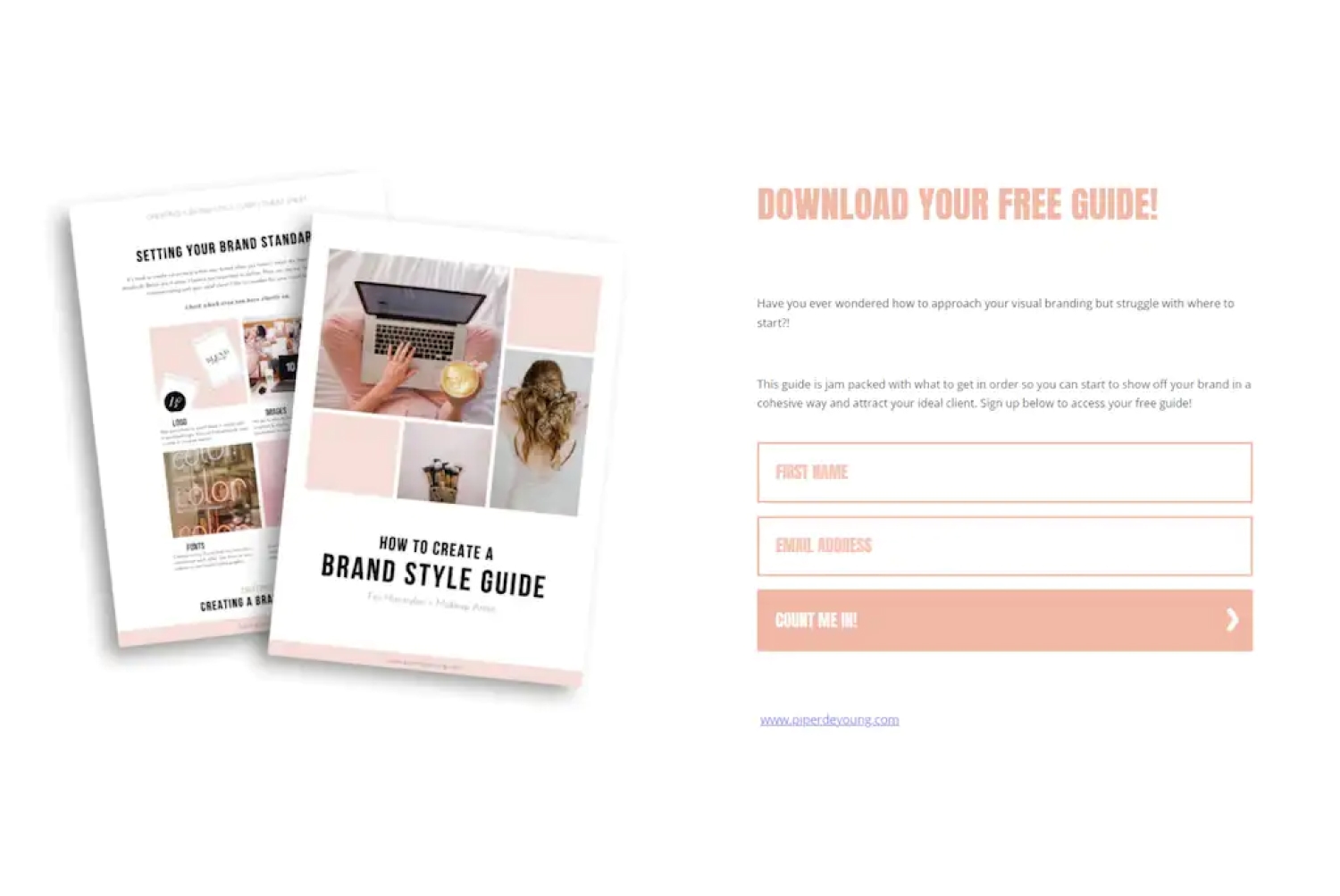 Here’s how brand designer Piper De Young uses a landing page to promote her free ebook: