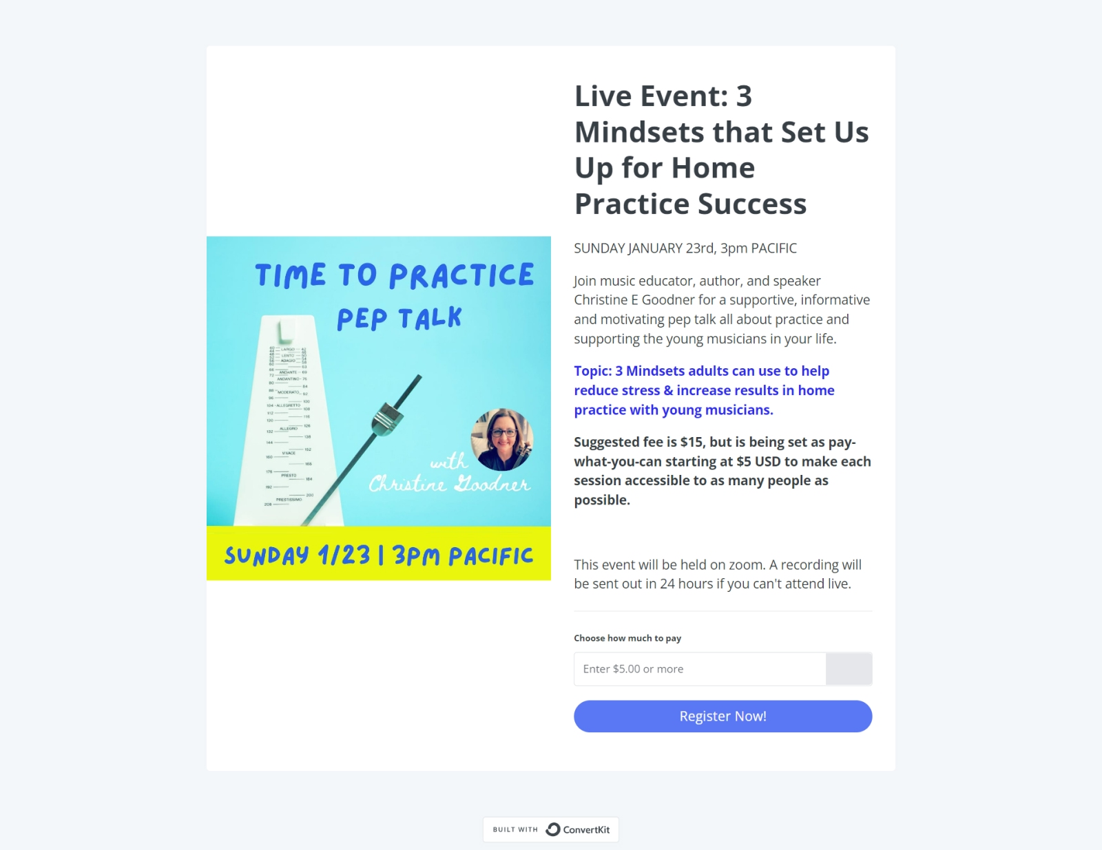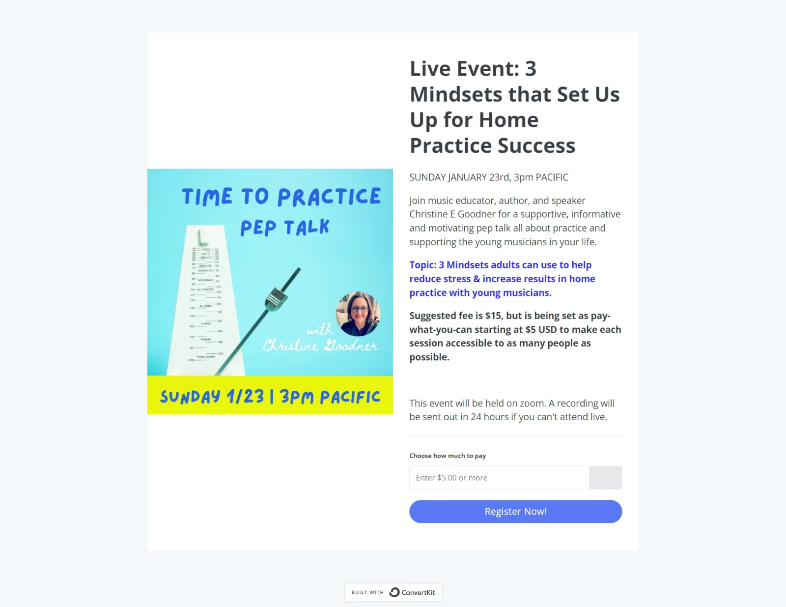 She tells me that she wanted to find a way to cover the cost of her podcast without ads, which sparked the idea for her PWYW product—live sessions where she discusses strategies to support young musicians.