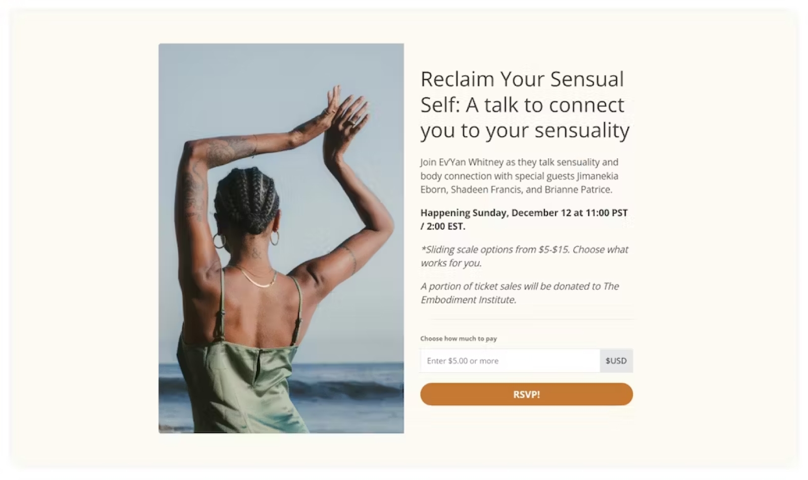 Ev’Yan Whitney hosted a talk and donated a portion of sales to the Embodiment Institute with her PWYW product.