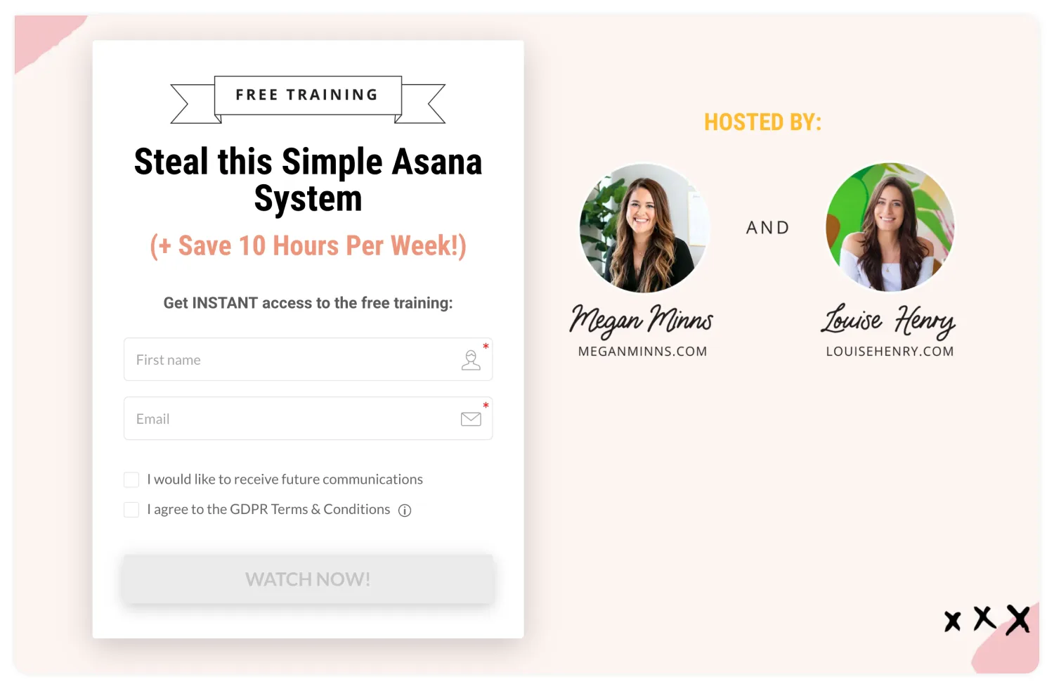 Megan Minns and Louise Henry collaborated on a live video training all about using Asana as an online business owner. At the end of that webinar, there was a pitch for Louise’s online course Uplevel with Asana.