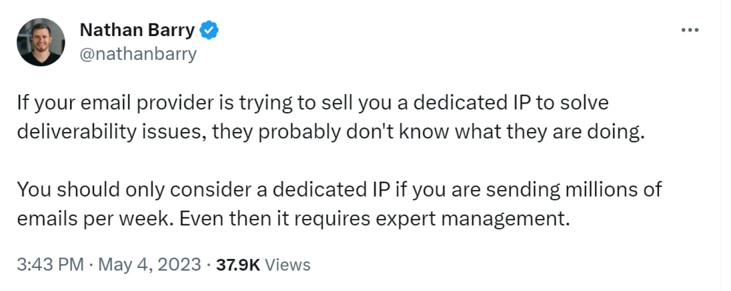 When looking for a reliable ESP, be cautious if they want you to get a dedicated IP.