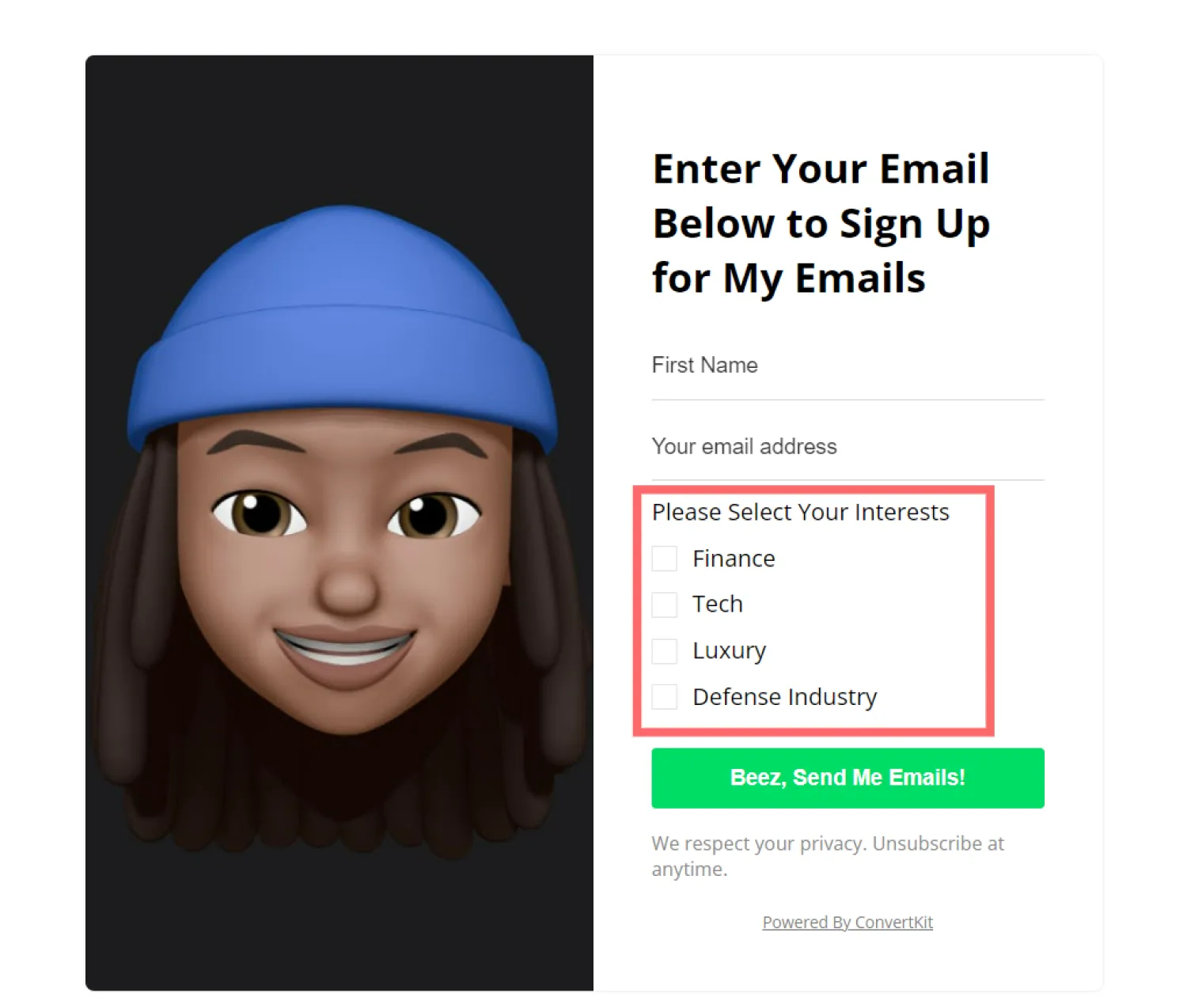 One quick way to segment your list is to let users self-select which types of content they’re most interested in right on your sign-up form.