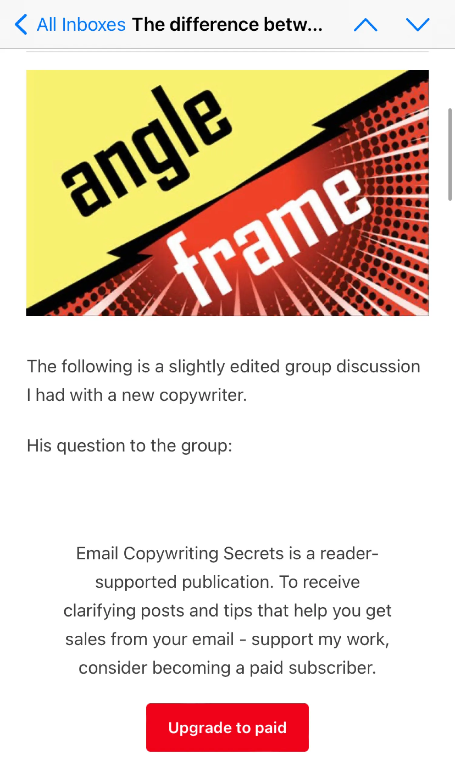 Copywriter Charlene Burke’s mobile version of her email has a nice clickable button with plenty of whitespace.
