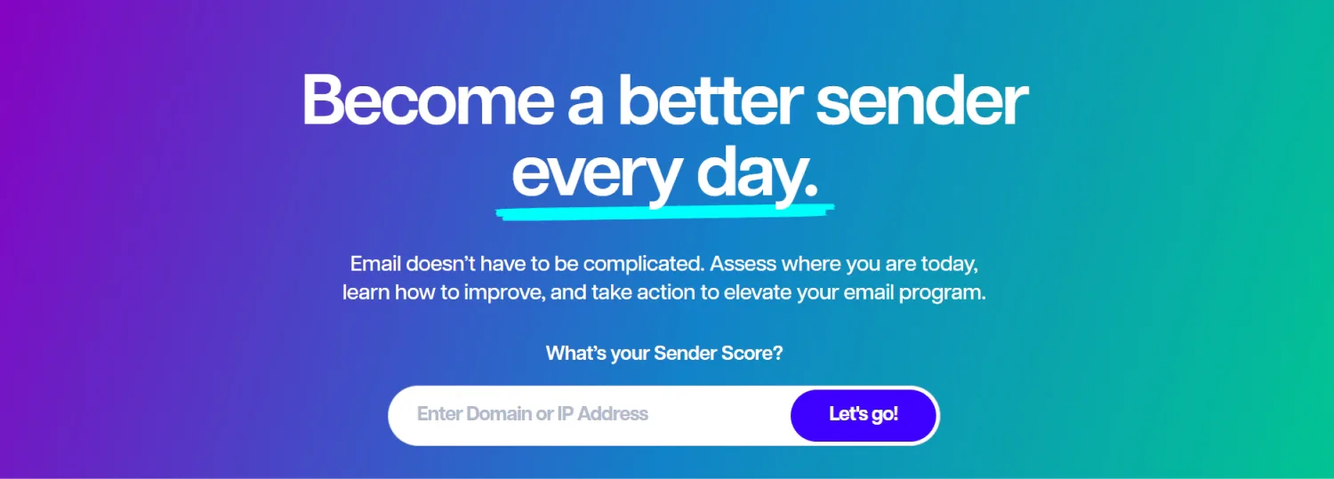 Sender Score measures the effectiveness of your reputation as an email marketer. Simply add your domain or IP address to their search bar to access data that helps you improve your email and domain reputation.