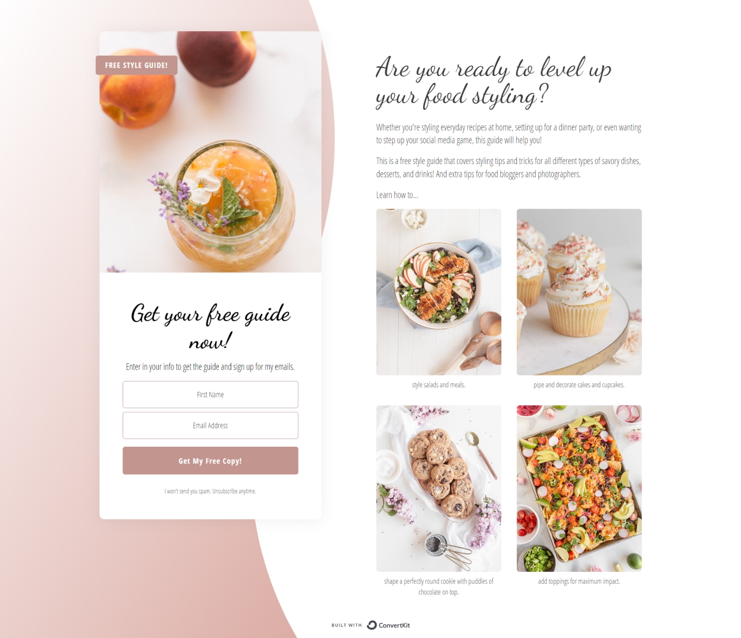 Food blogger Amanda also uses a dedicated landing page as well as opt-in forms on her website. Consider using a mix of opt-in forms and landing pages to attract people to your list.