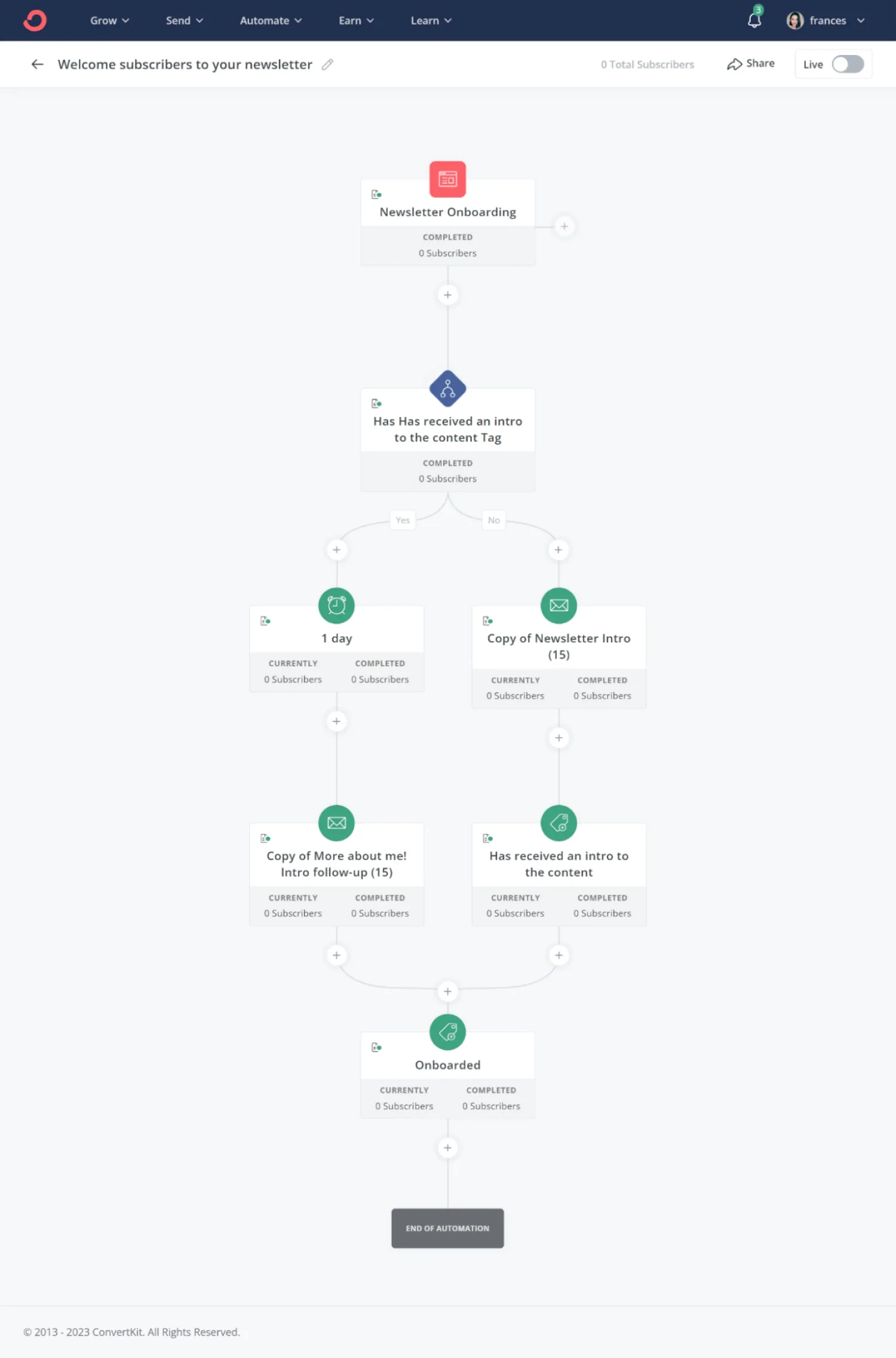 Using Kit, create Automations that instantly add new subscribers to your welcome sequence. This way, you never need to worry whether your leads are moving down your marketing funnel.