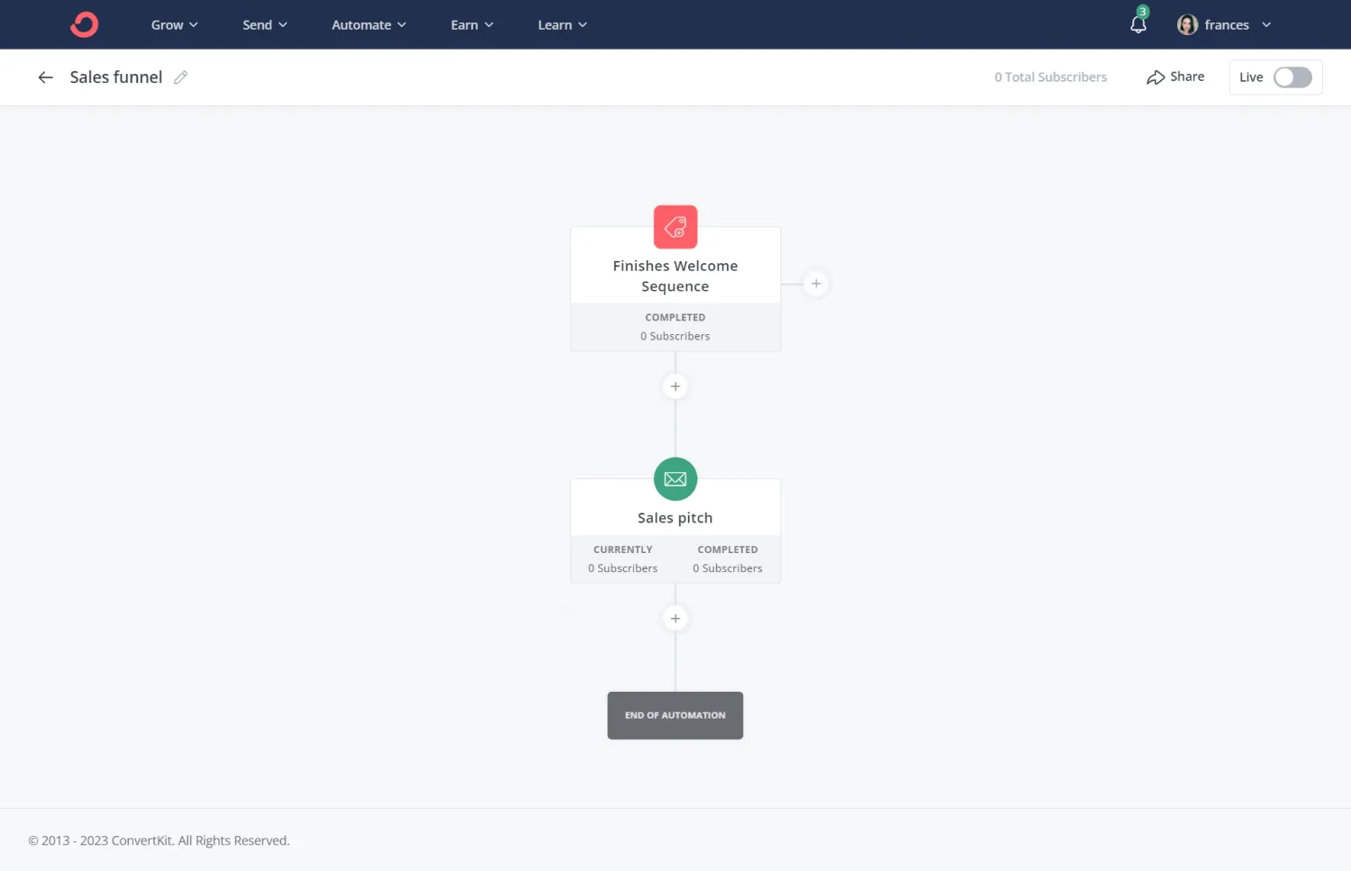 After someone finishes your sales pitch, you can use Kit’s Automations to further personalize their journey, either through additional sequences like upsells, downsells, or longer sequences to warm leads up who didn’t convert.