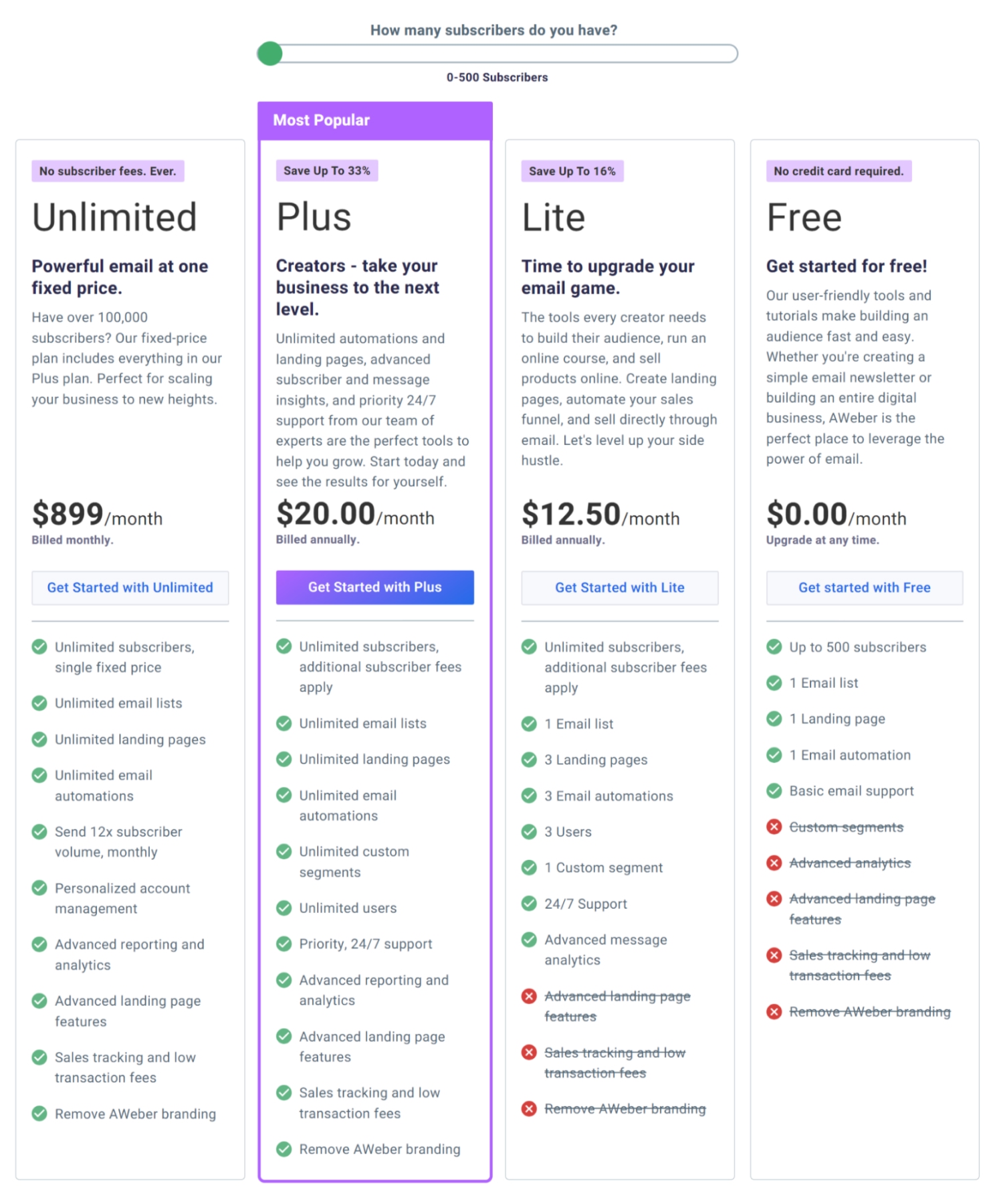 AWeber plans