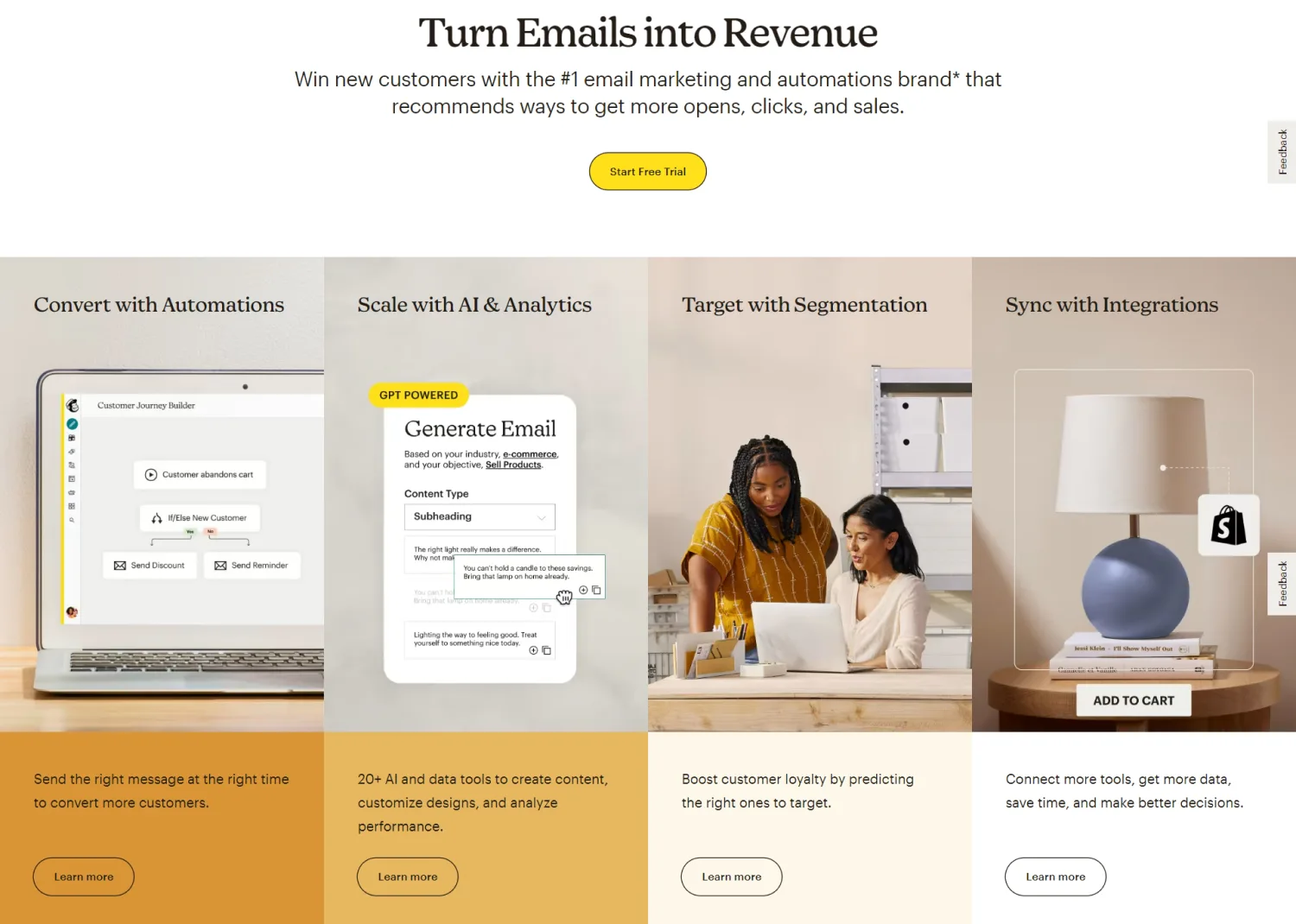 For example, if you want an email marketing strategy that sells your products in the background, you’ll likely want to set up funnels and automations. In this situation, a plan that charges per email sent might not be the best fit. The costs can quickly add up, especially with your funnels in place.