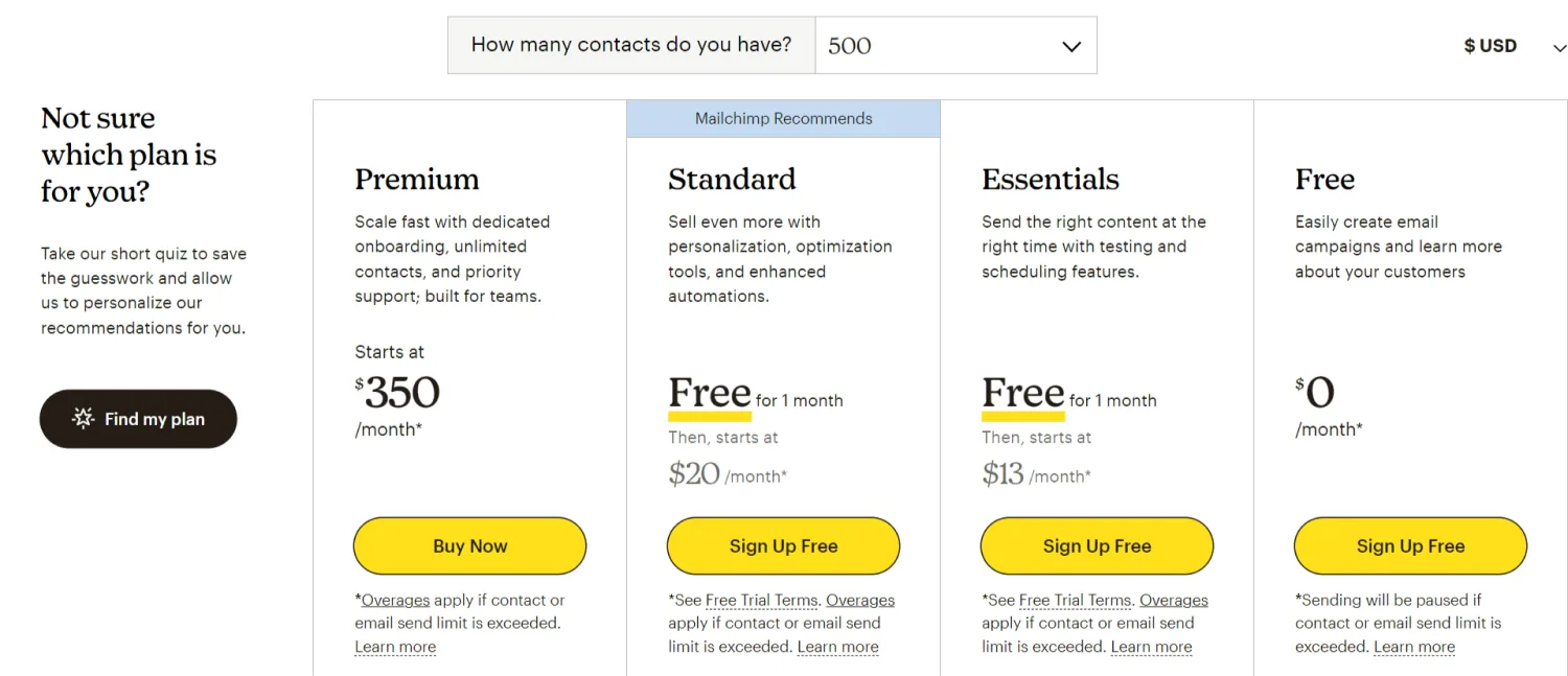 Mailchimp plans