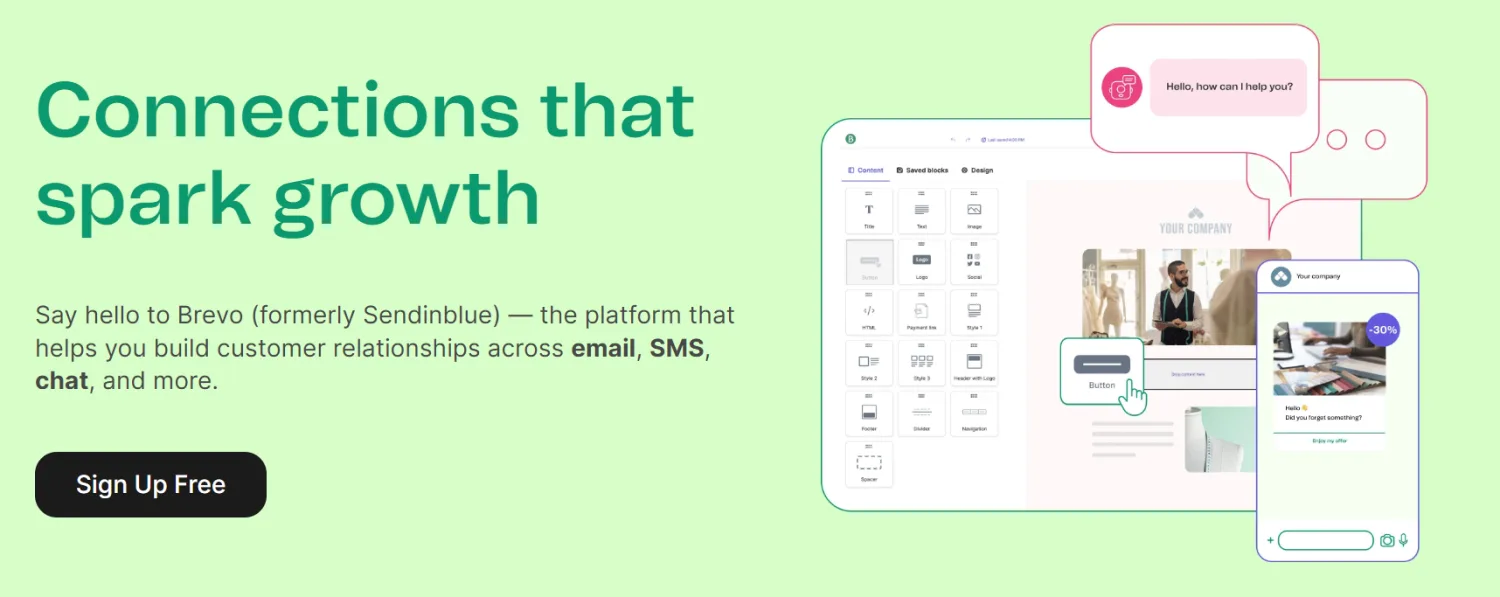 Brevo is an all-in-one newsletter tool for small to medium businesses. It offers cross-platform communication to manage emails, SMS text messages, and chat with customers on your website—all within their platform.