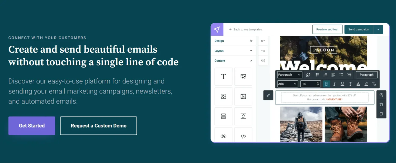 You can design your newsletters by using their drag-and-drop email builder and premade templates.