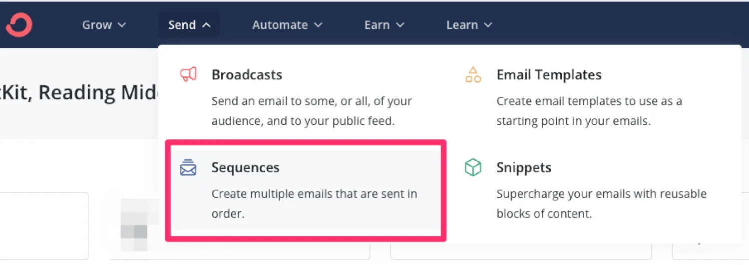 The easiest way to start an email sequence is by sending a welcome email to your new subscribers. To create a new Sequence, go to Send > Sequences.