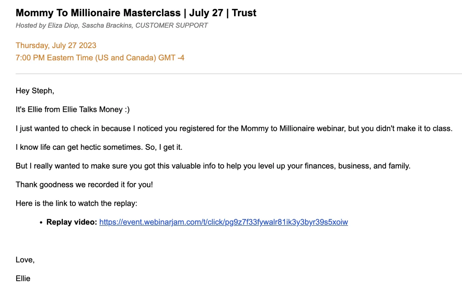 Example: Ellie Diop’s event email sequence