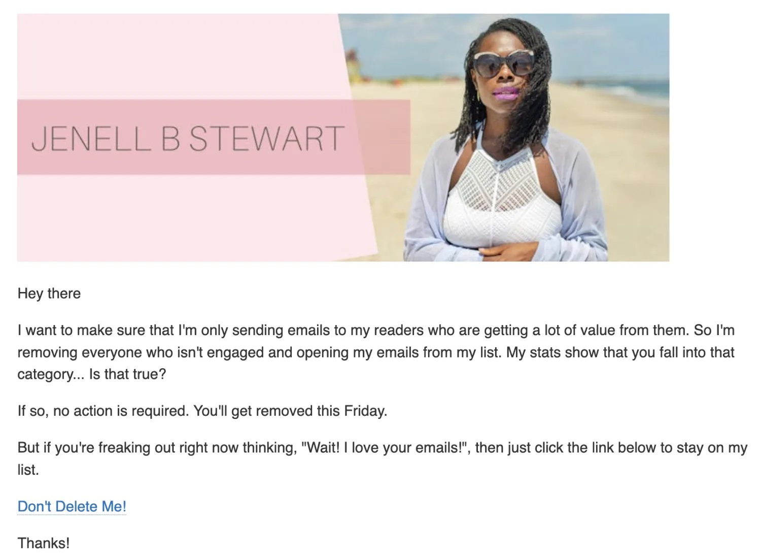 Example: Jenell B. Stewart’s re-engagement email sequence