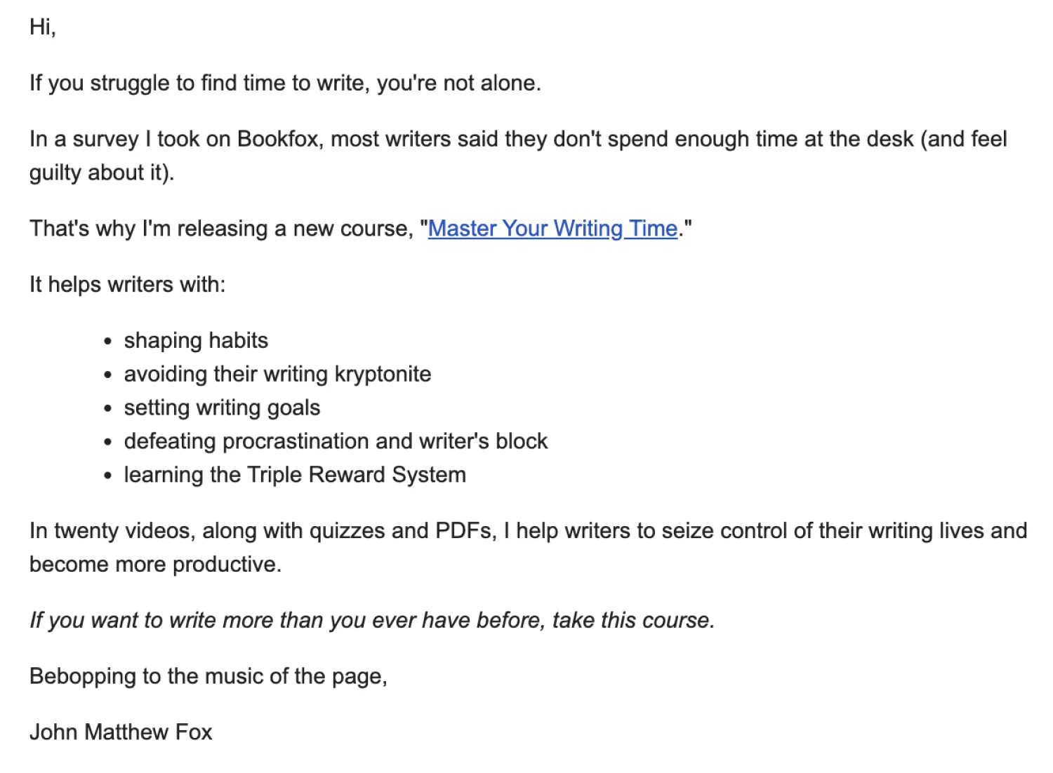 Toward the end of this email, you can mention your product in a relevant way to your audience. Don’t give your sales pitch just yet. That will come later. For now, lightly introduce your product and say you will share more information about it soon.