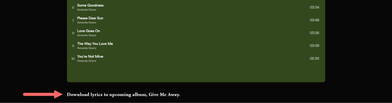 Instead, consider adding a downloadable link to your lyrics. Like singer Amanda Grace does: