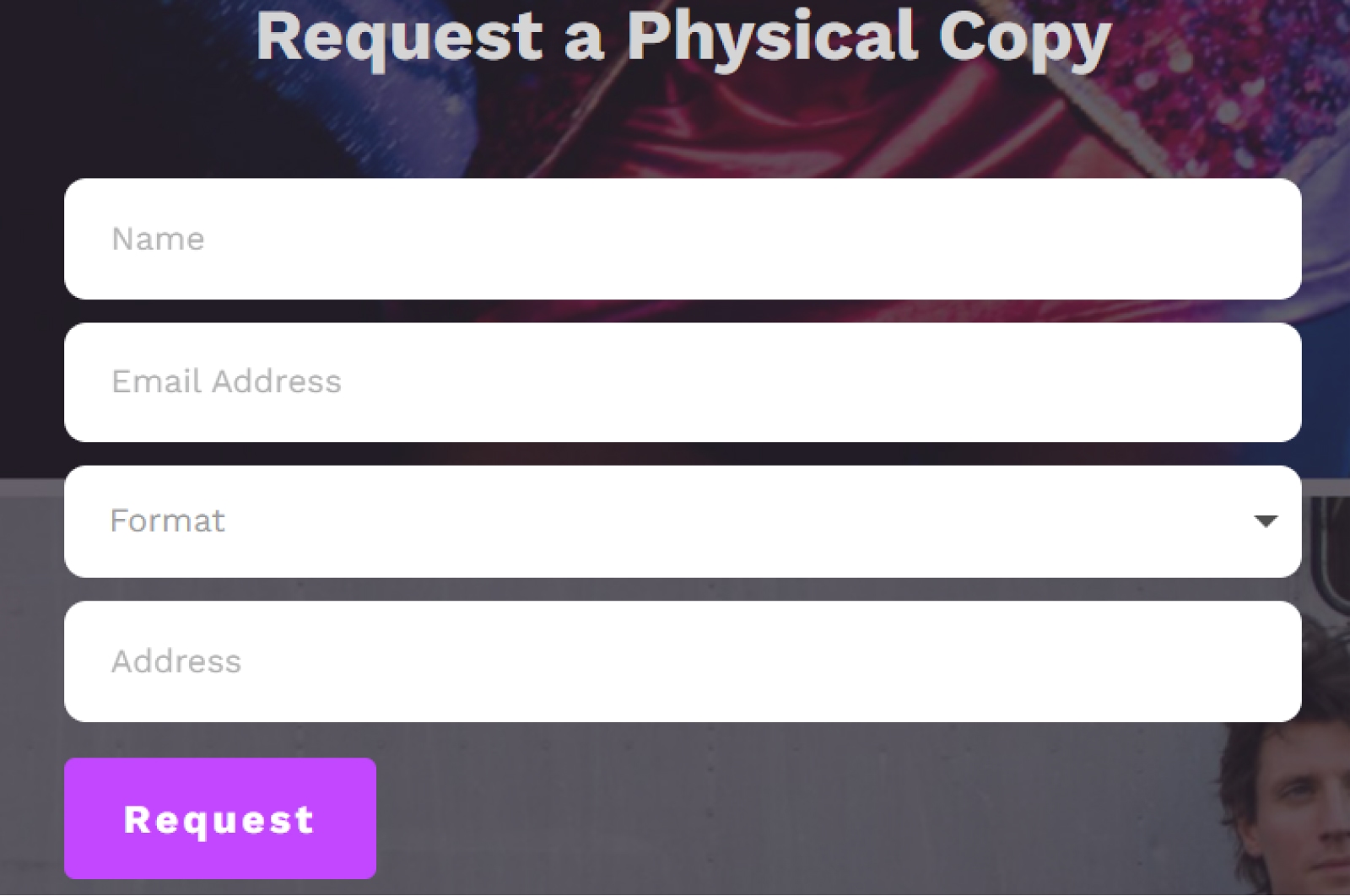 Add a row of header text above the form that says “Request a Physical Copy” and click the “+” below the email address field.