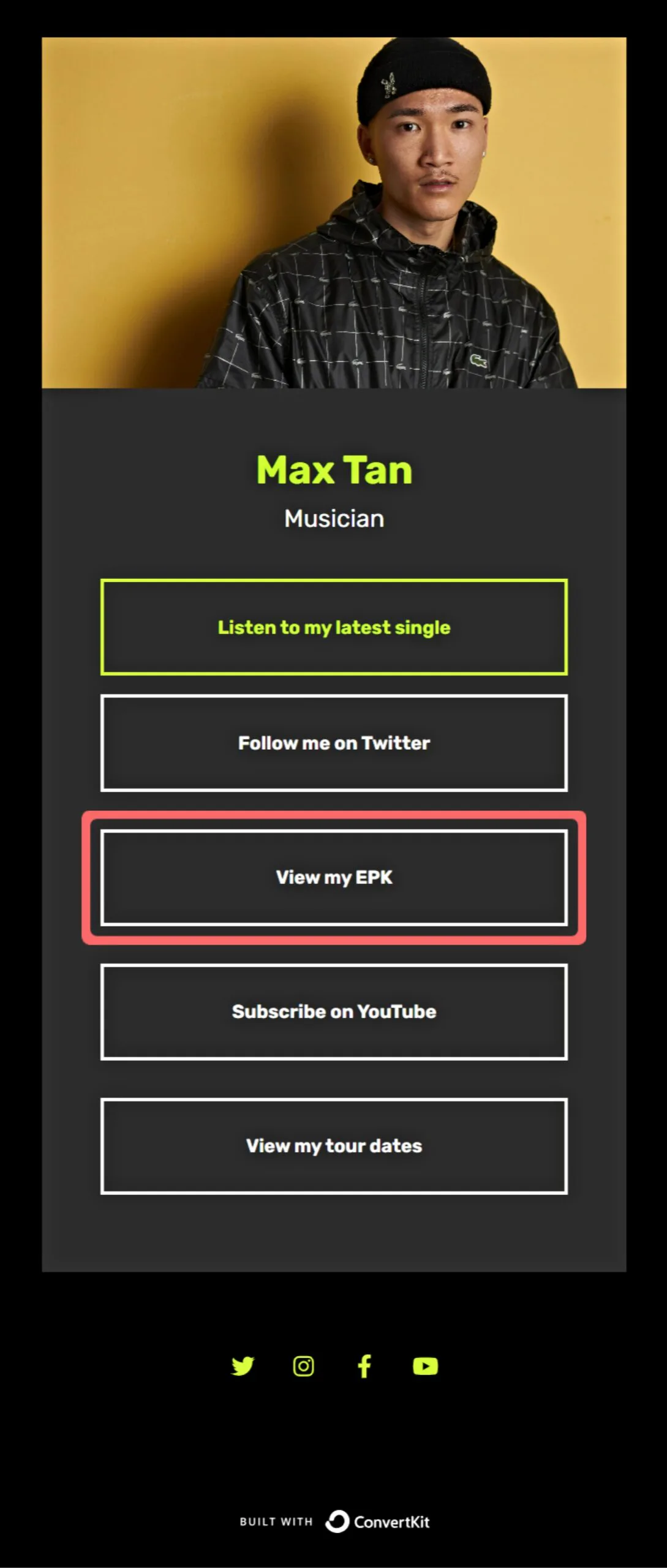 Then, when industry professionals click your link, they can jump straight to your EPK to get the info they need.