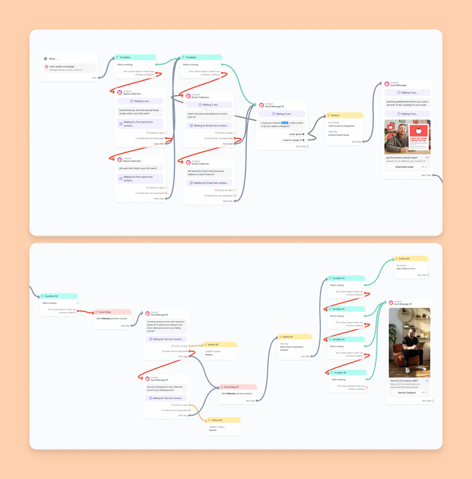 The data he gets back is gold. Some people want to sell more products. Others want to grow their email list. Some just want to level up their automation skills. Each answer automatically tags them in Kit and puts them into the right bucket.