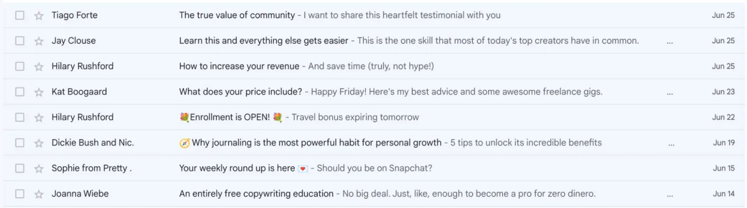 Take a look at these creators’ subject line examples: