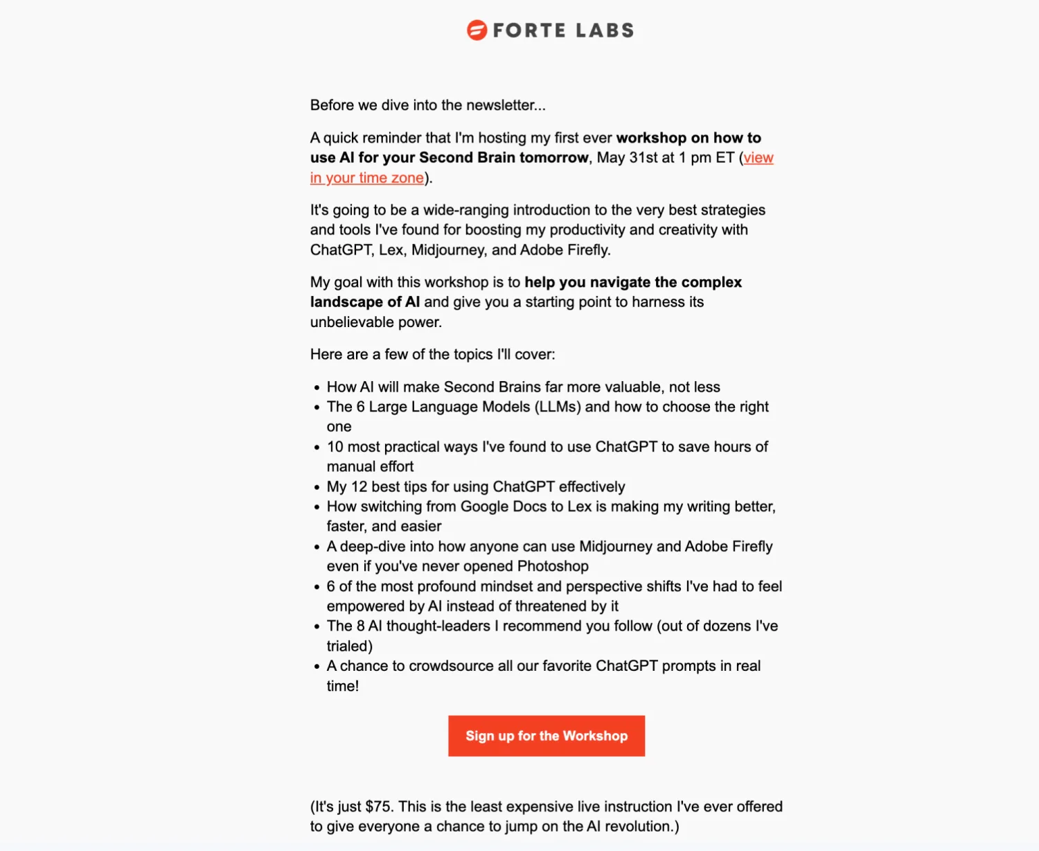 Tiago Forte’s newsletter call-to-action