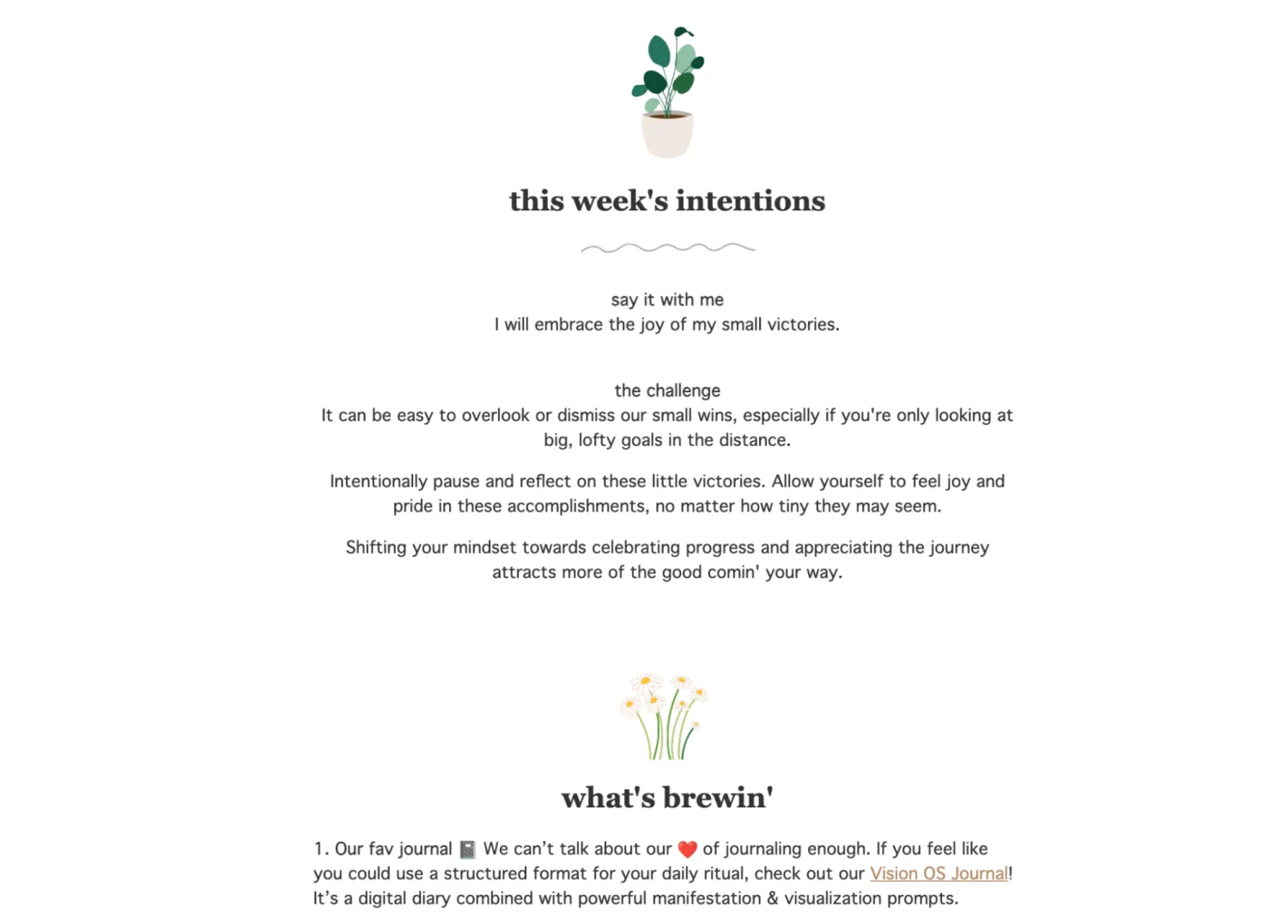 For example, here’s a snippet from a newsletter by Jules Acree, a lifestyle content creator. Her newsletter is called Slow Brew Sunday, and the gentle style and tone of her emails reflects that: