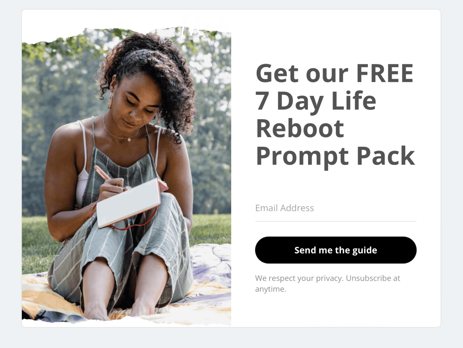 These challenges give subscribers a taste of what membership could look like. New subscribers receive a curated sequence of journal prompts, access to live journaling sessions, and an invitation to become a member.
