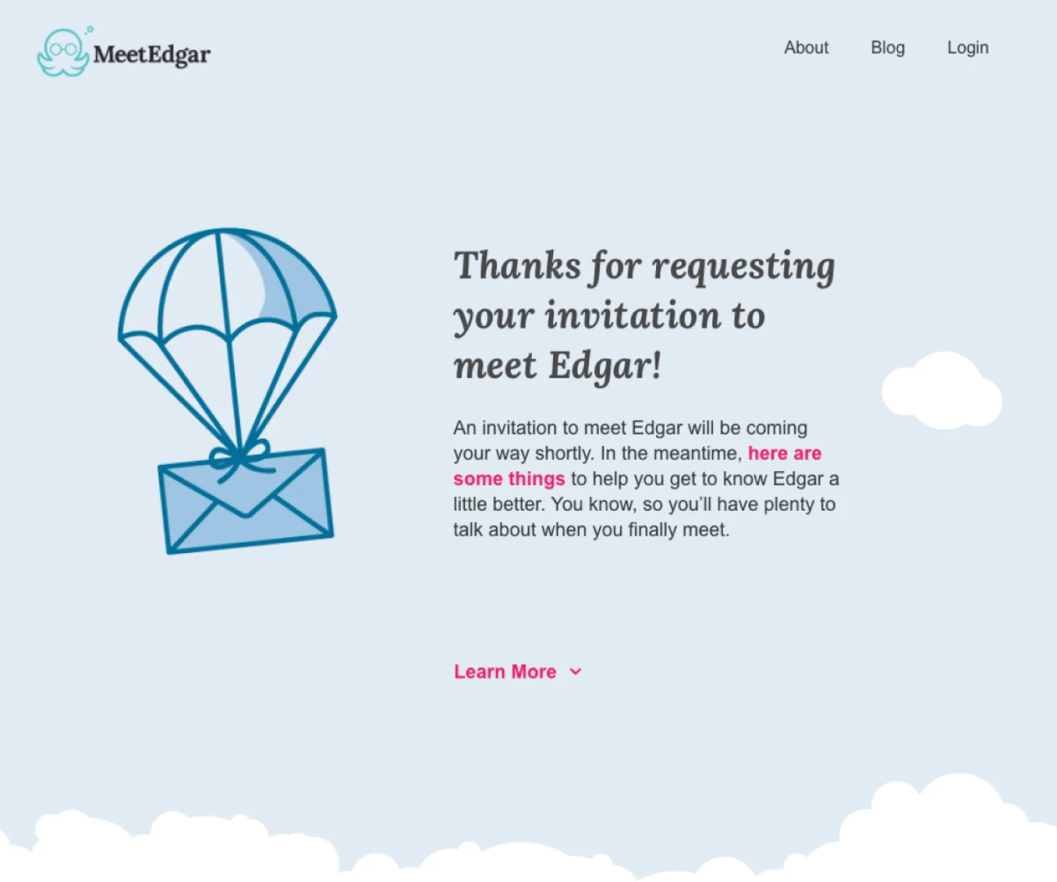 This page by MeetEdgar does exactly that with a “Learn More” button to share more information about the brand.