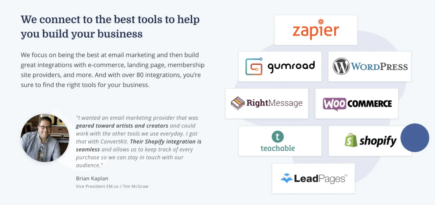 Here’s how we do it at Kit—a perfect mix of testimonials and social proof.