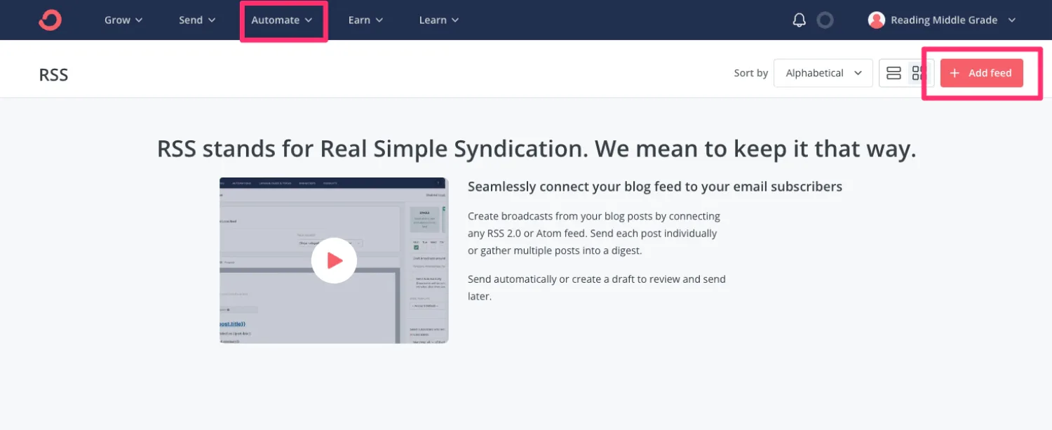 On your dashboard, head to Automate > RSS > Add Feed.
