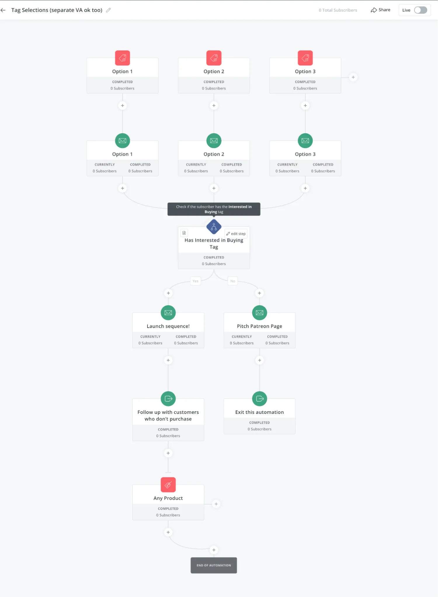 What happens after a subscriber gains a new tag is up to you. You could save the new segmentation to send relevant content in the future without triggering any immediate sequences. Or you can also use self-segmentation to kick off automated content.