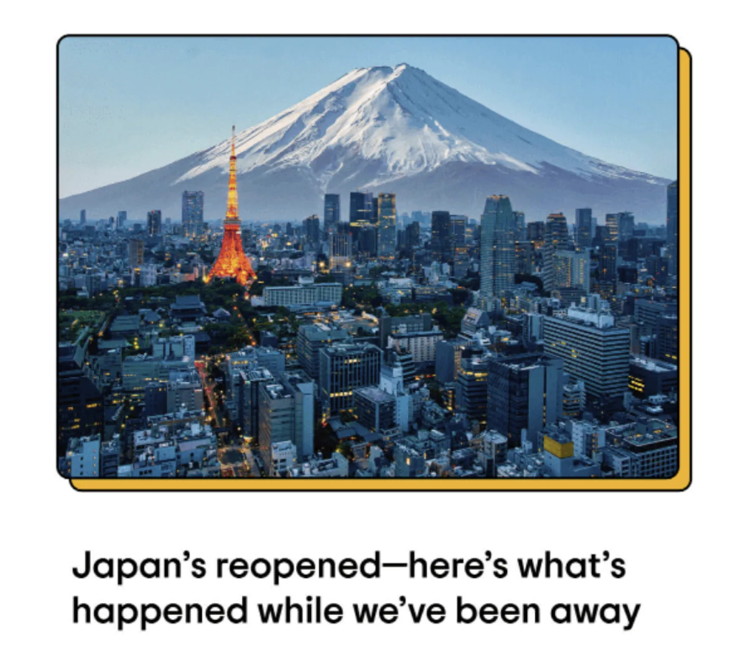Another simple way to elevate your newsletter design this year is through colorful and patterned button drop shadows. Adding an offset shape behind your CTA button gives it a subtle 3D effect while drawing more attention. Drop shadows also add more dimension to images in otherwise minimalist text emails, like the example from TripAdvisor.
