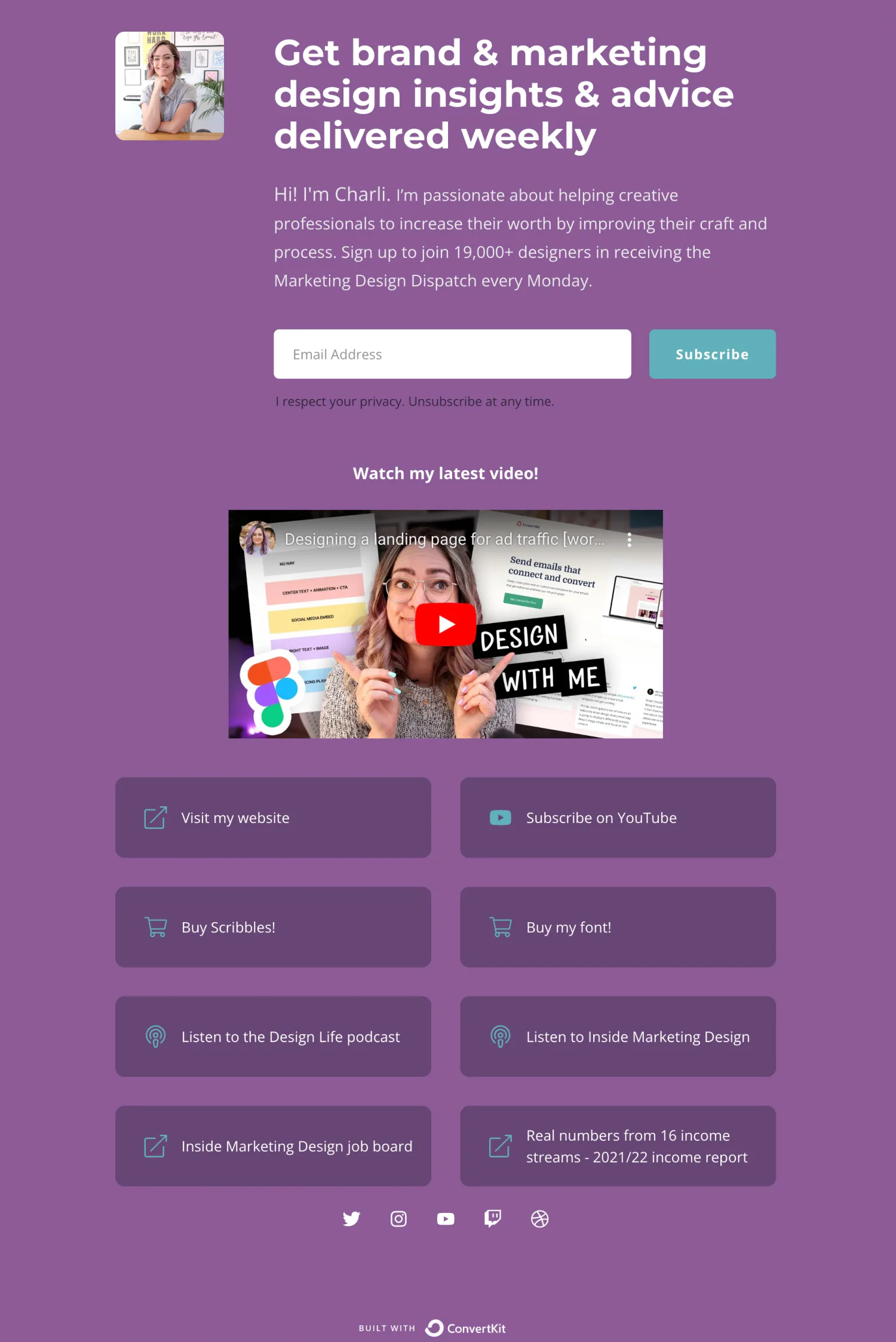 Why this designer newsletter landing page works well: