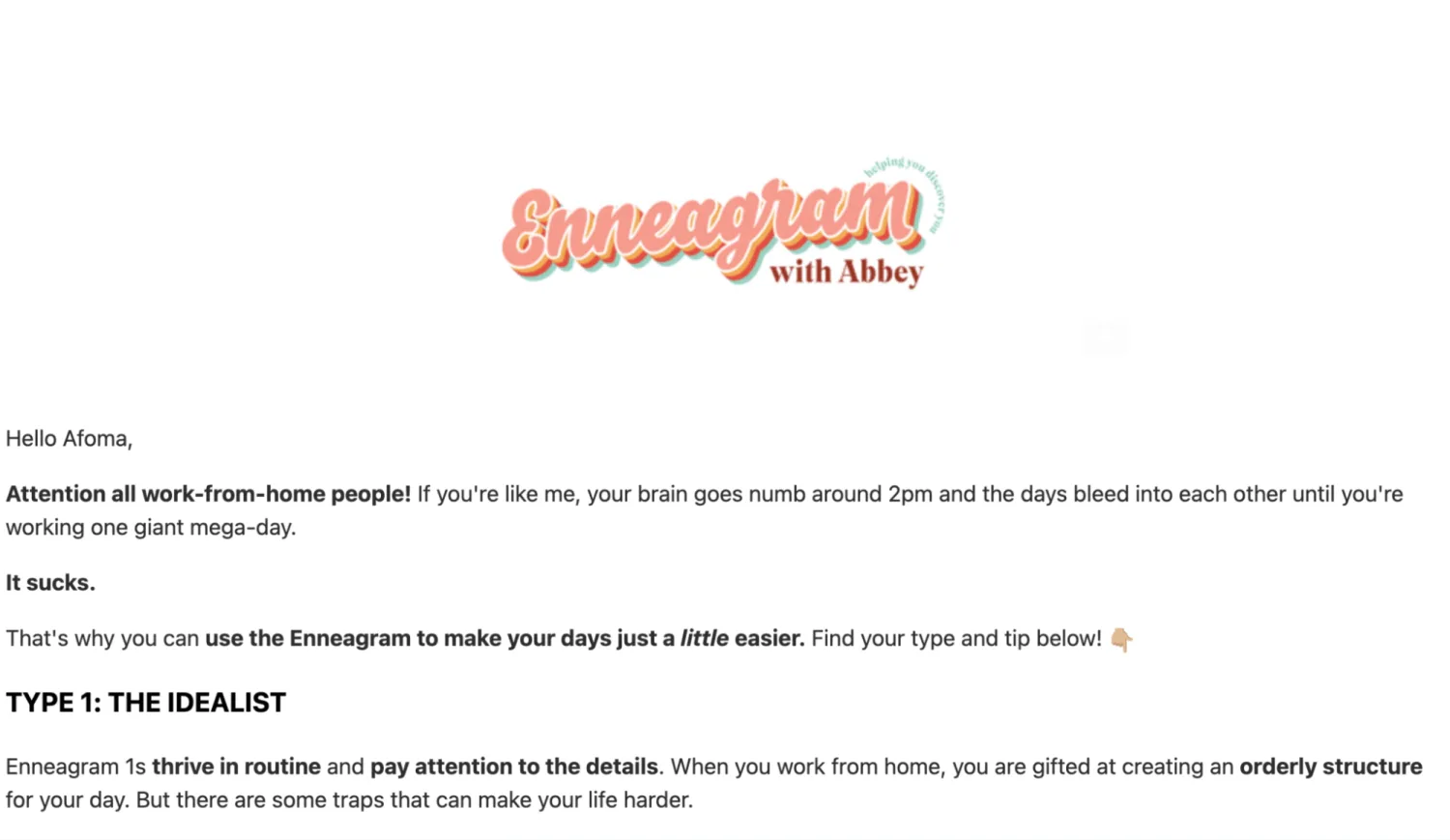 Abbey Howe mixes her name with her interest in the Enneagram