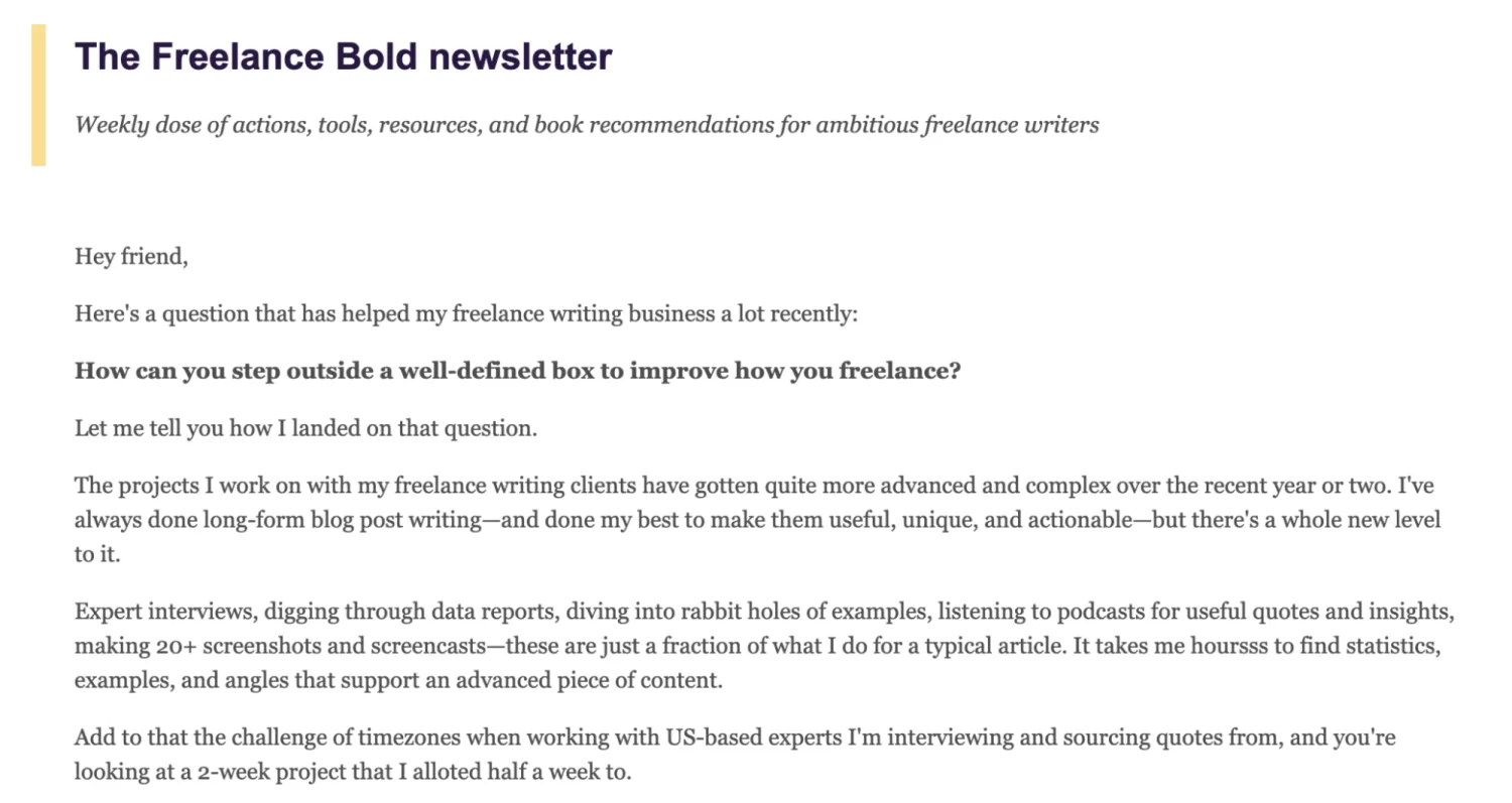 The Freelance Bold newsletter bears the same name as its root blog