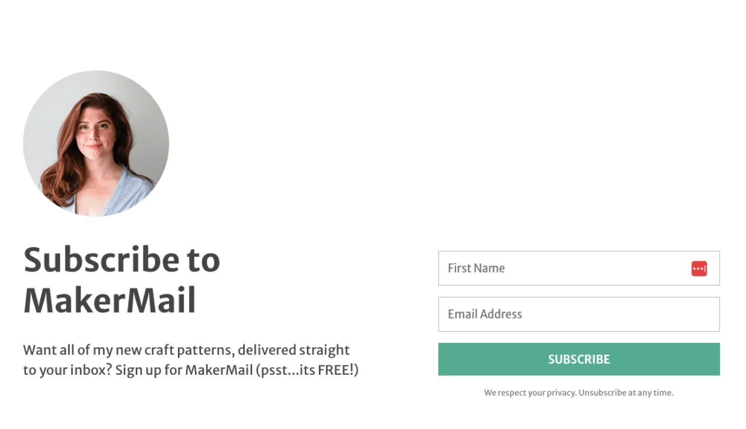 Another spot to include your newsletter name is on the sign-up form. These smaller blocks won’t have as much information as a full landing page, but you’ll have plenty of room to present your value proposition.