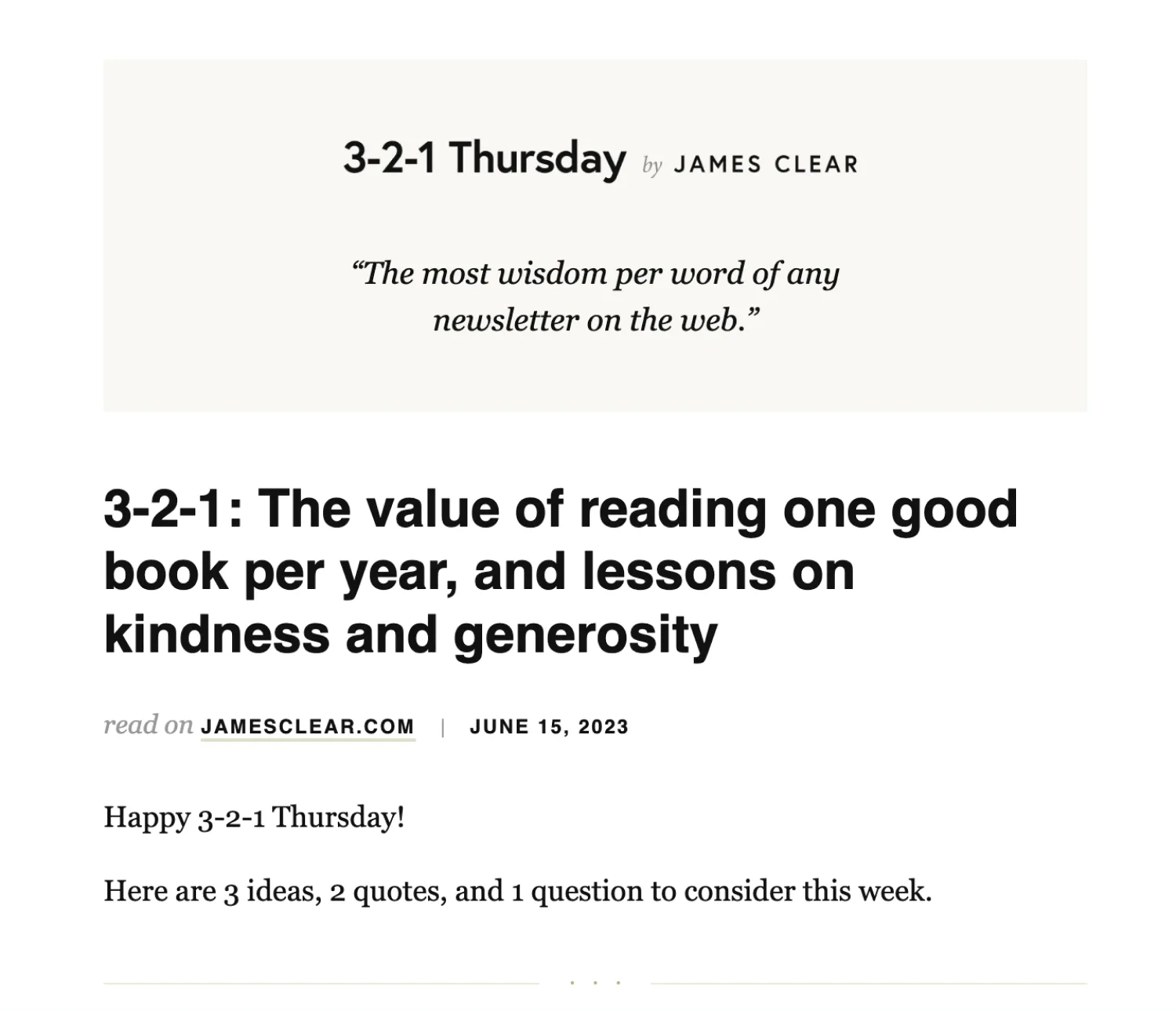 James Clear’s Thursday newsletter stays true to its time-based name