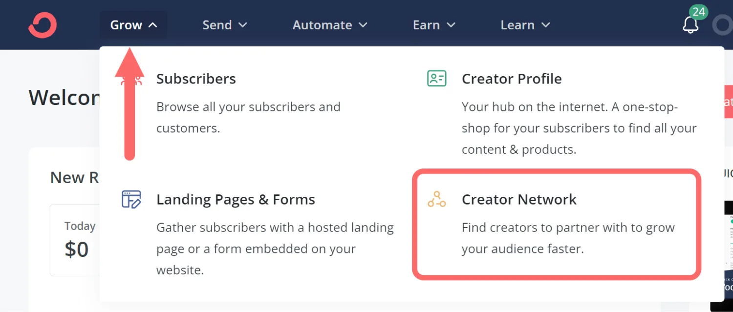 Head to Grow > Creator Network.