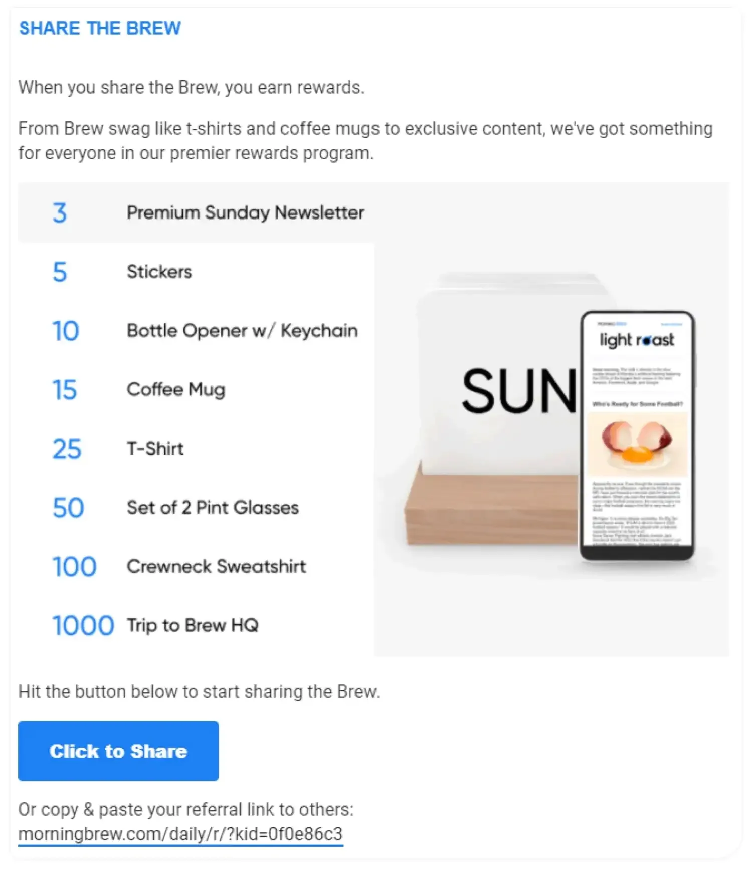 Daily newsletter Morning Brew used referrals to catapult its list of subscribers from 100,000 to 1.5 million subscribers in just 18 months.
