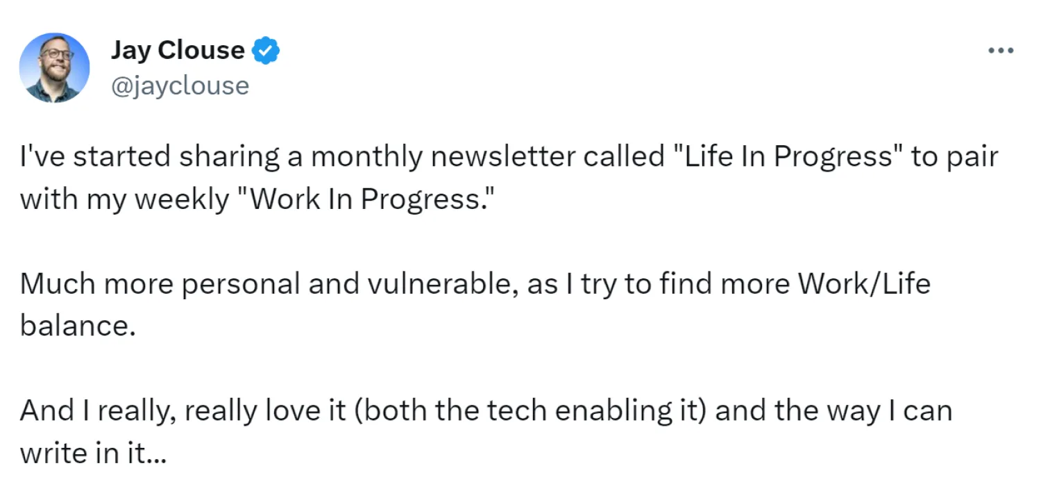 After seeing huge success with his weekly newsletter “Work In Progress,” he launched a paid newsletter called “Life In Progress.”