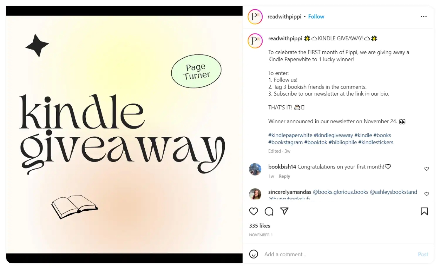 To enter, people had to follow, comment, and subscribe to Pippi’s newsletter.