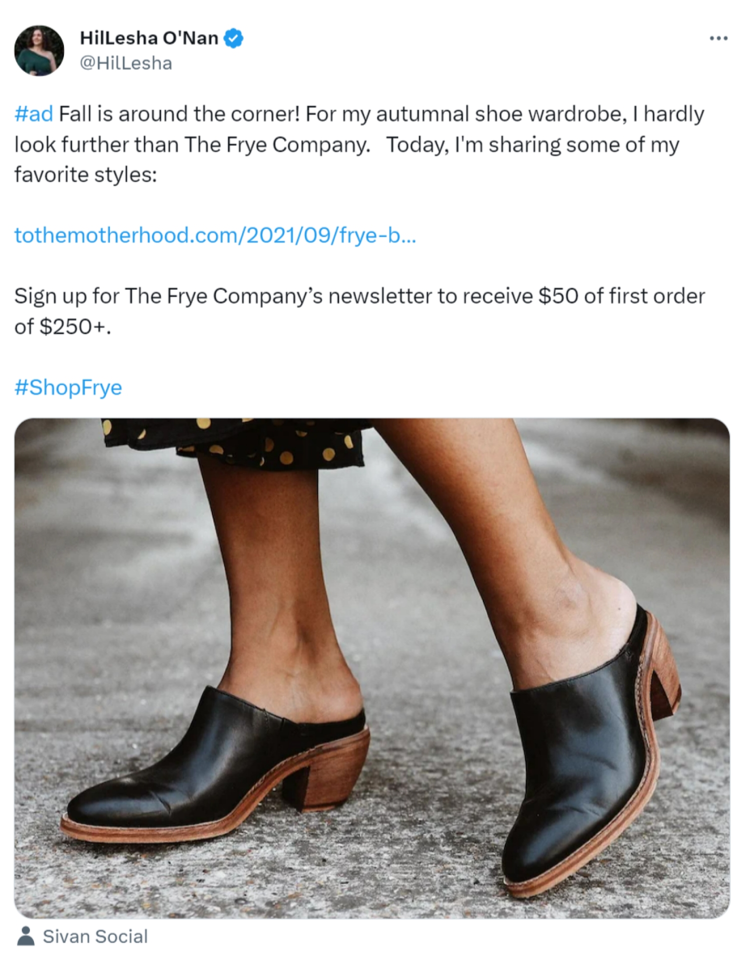 Content creator HilLesha O’Nan is an influencer who partnered with a shoe company to promote the company’s newsletter: