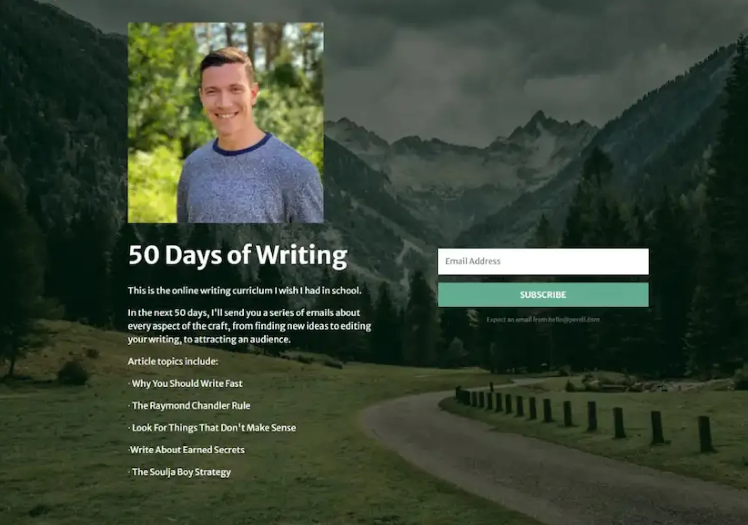 He uses a short, powerful message that tells visitors what they get from the course. And beneath the copy, he has a simple opt-in form with a single CTA.