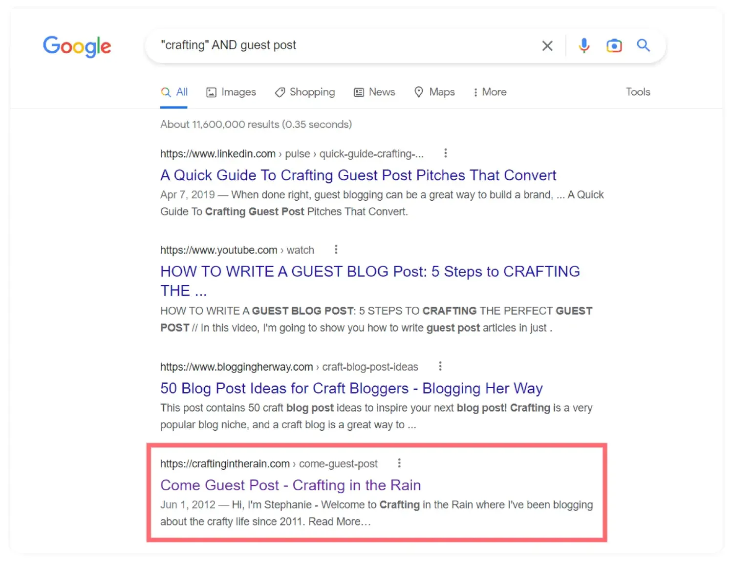 To start, head to Google and search “your niche” AND guest post.