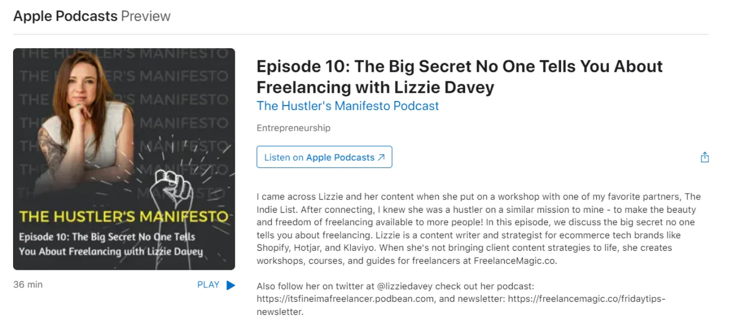 Lizzie notes that podcast interviews often give her high-quality subscribers because they’re already interested in what she offers.