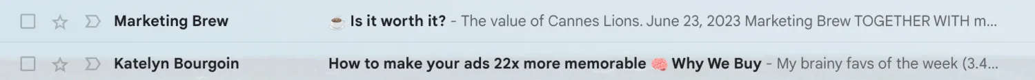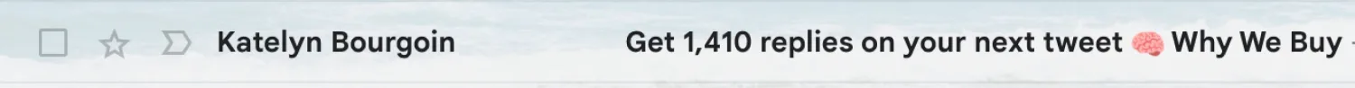 If readers can preview what they can learn from an email through the subject line itself, it can be a major pull to open the email, and Katelyn does this well. Image via Katelyn Bourgoin.