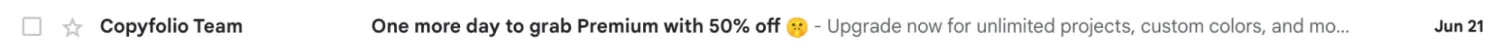 A sense of urgency is great because it gets people to act under pressure quickly, especially if you’re announcing discounts, promotions, sales, or offering any coupons. However, don’t use it too frequently to avoid triggering spam filters, impacting your email deliverability.